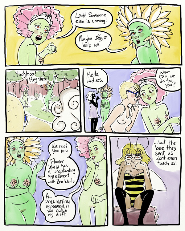 BIG NEWS! Chapter 4 of Curvy will start next week, but FIRST, I’m throwing an INTERNET PARTY! This week marks the tenth anniversary of my entry into webcomics, and to celebrate I’m having a guest week. So come back every day this week for awesome guest comics by cool, sexy people! If you missed the last page of chapter 3, flip back here.