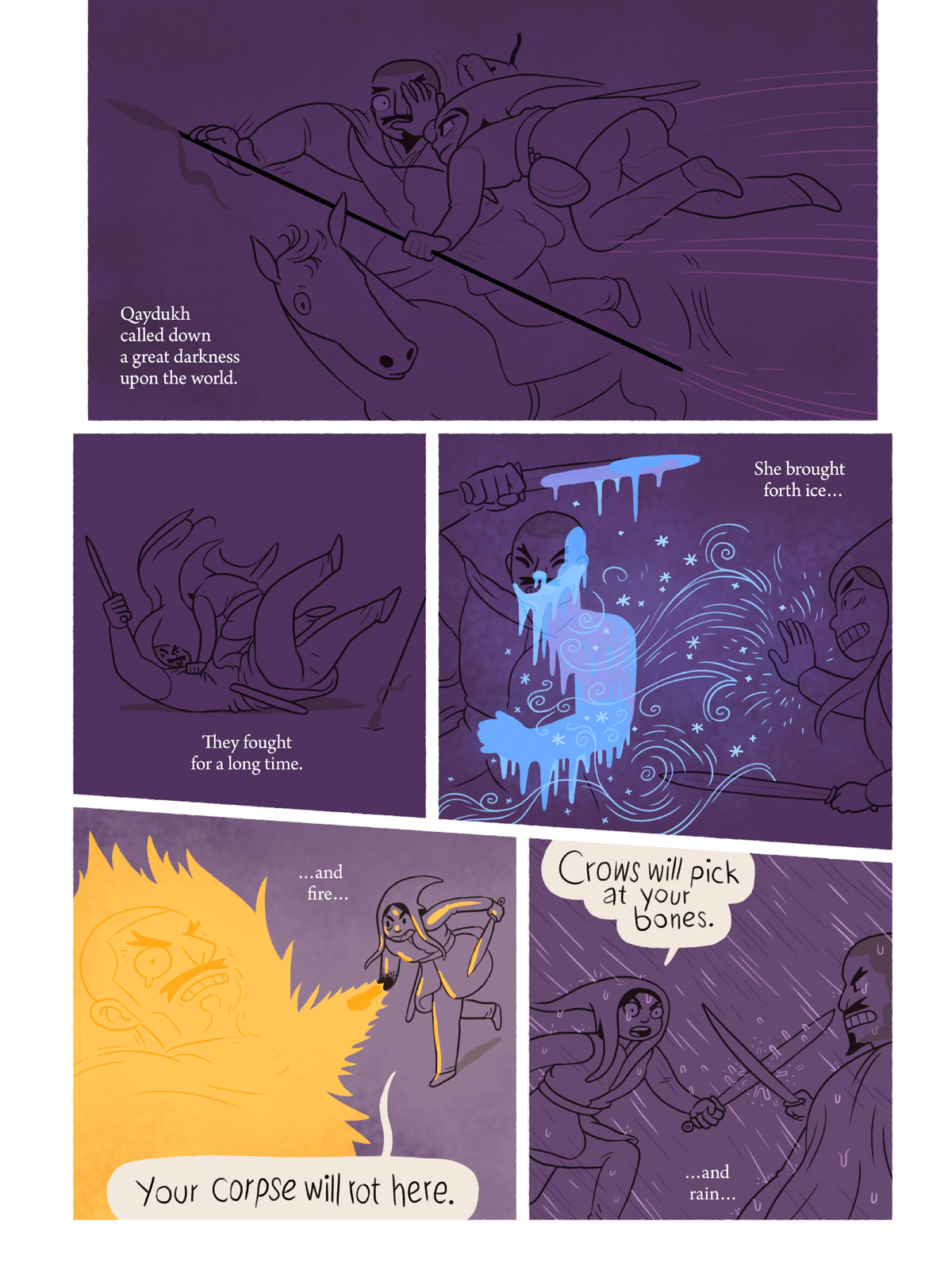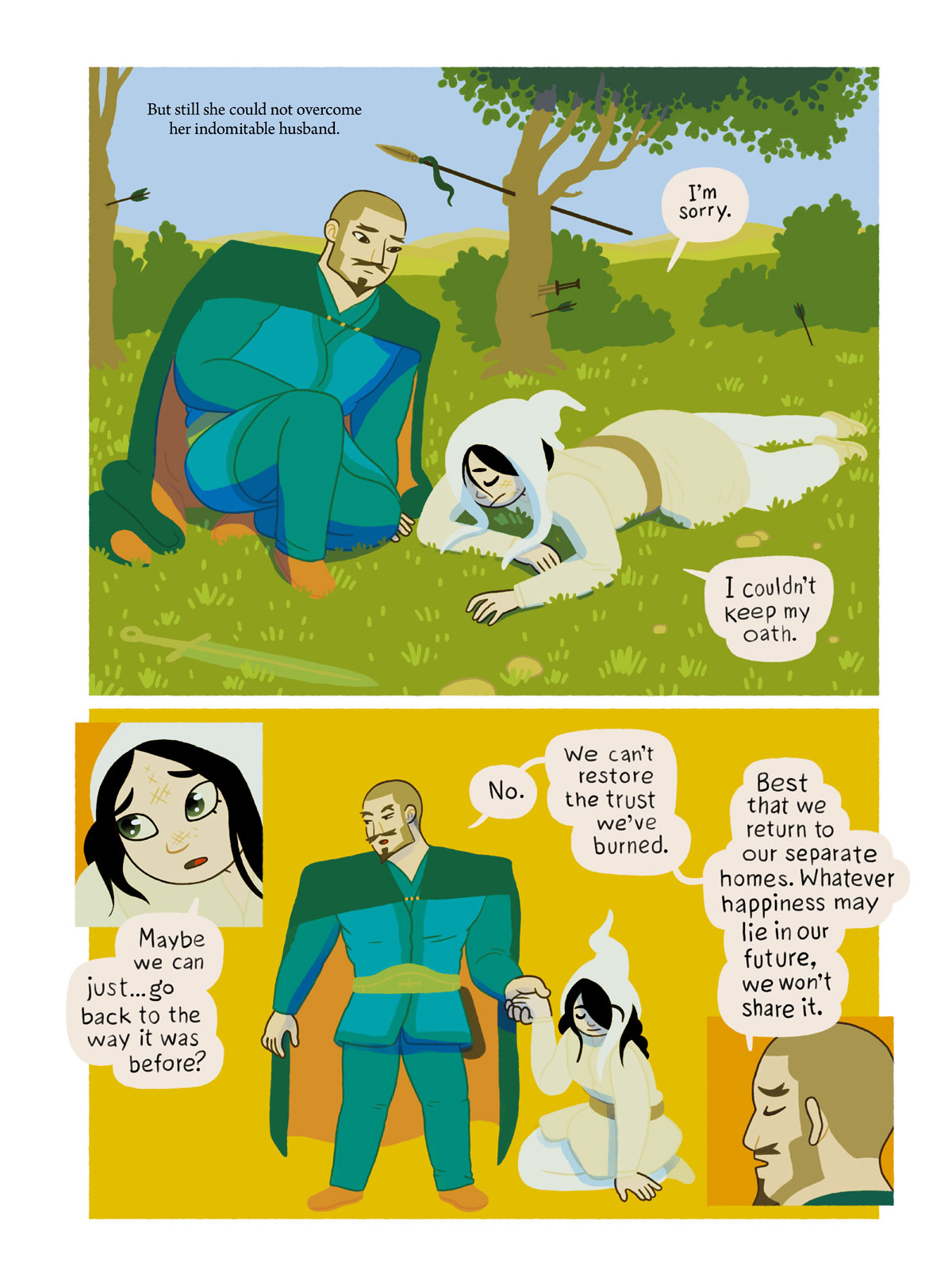 The end! Next time, we’ll launch into a somewhat lighter story, featuring dancing, trickery, and pee. Stay tuned!