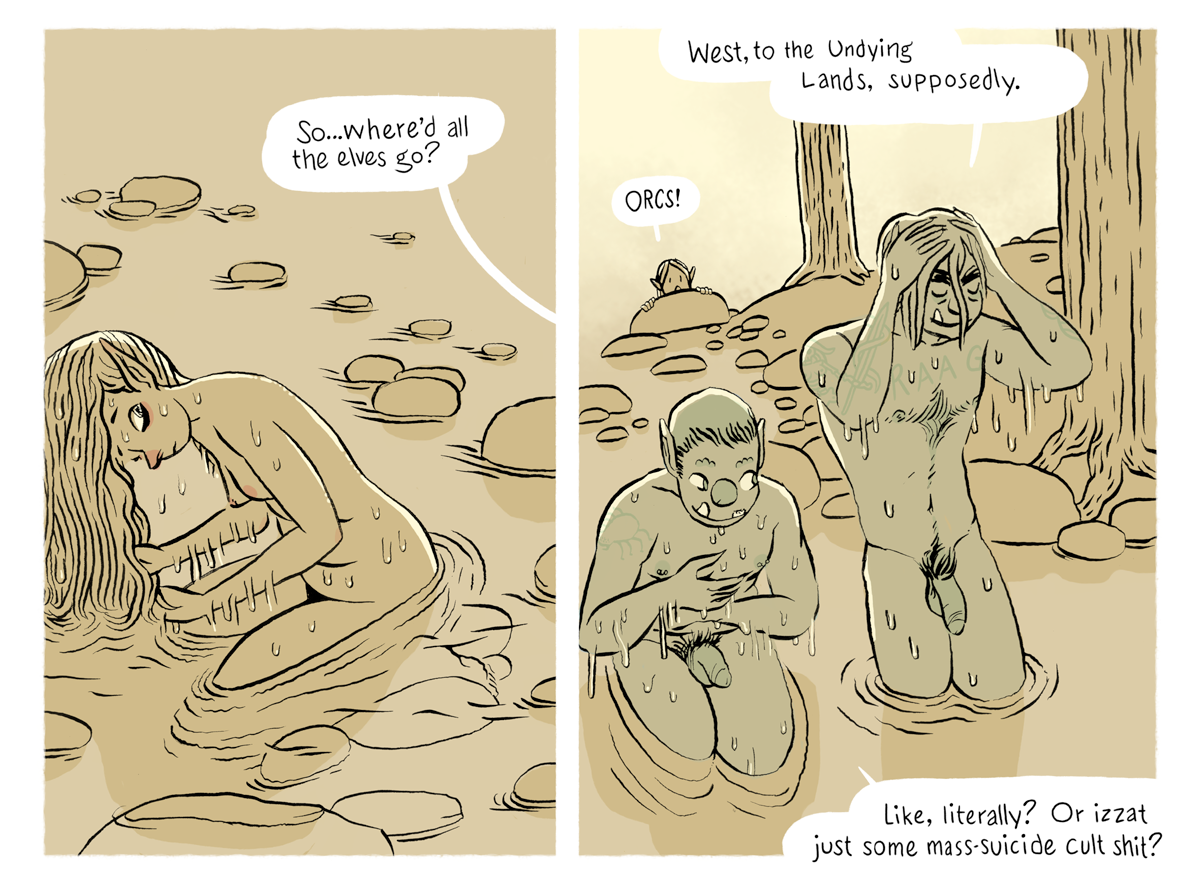 Here’s a little appetizer for ya, some orcs & elves from Dawnwood, a high-fantasy tale serializing now on Patreon and Curvy Scouts: